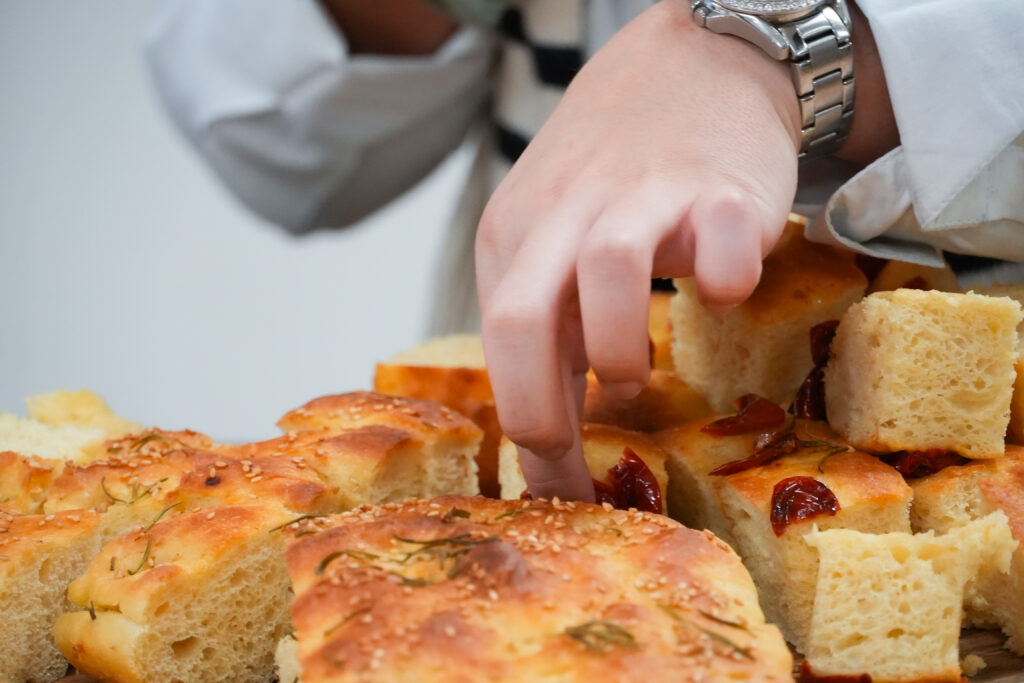 Moelleuse, parfumée à l’huile d’olive et parfois au romarin, la focaccia accompagne parfaitement votre repas.