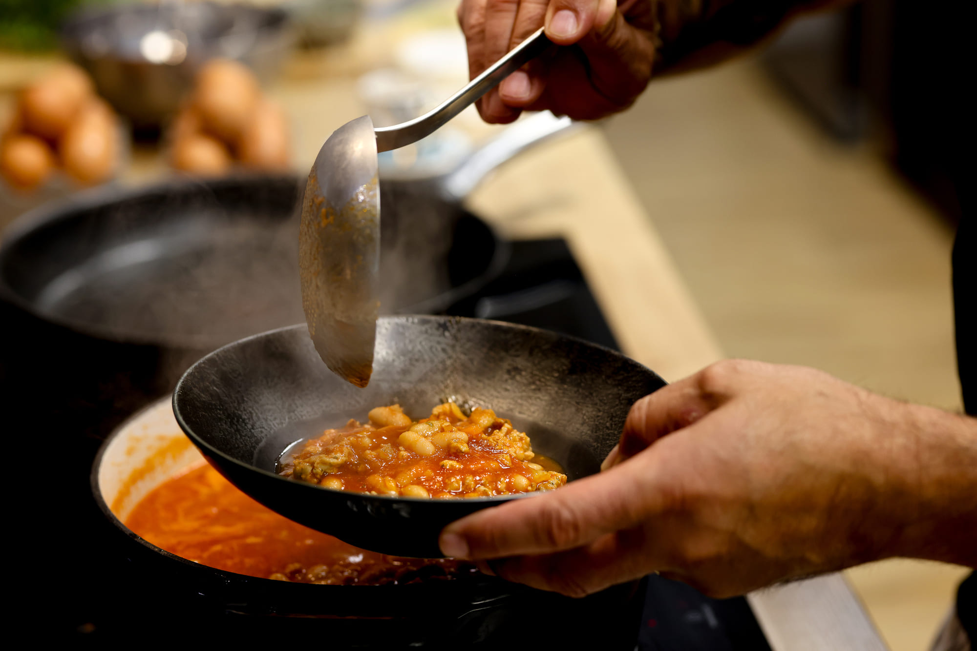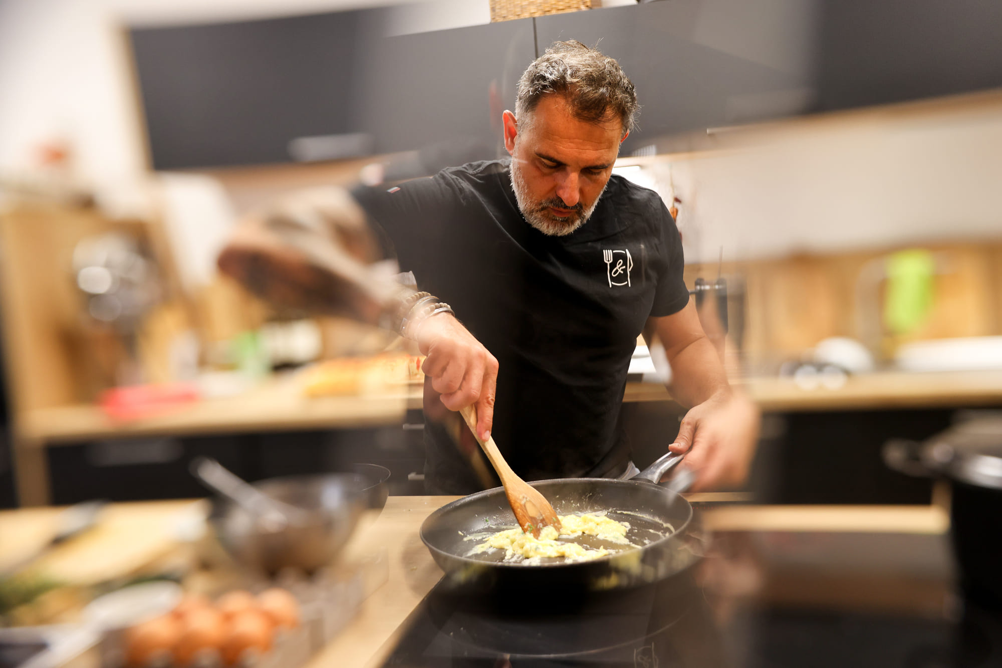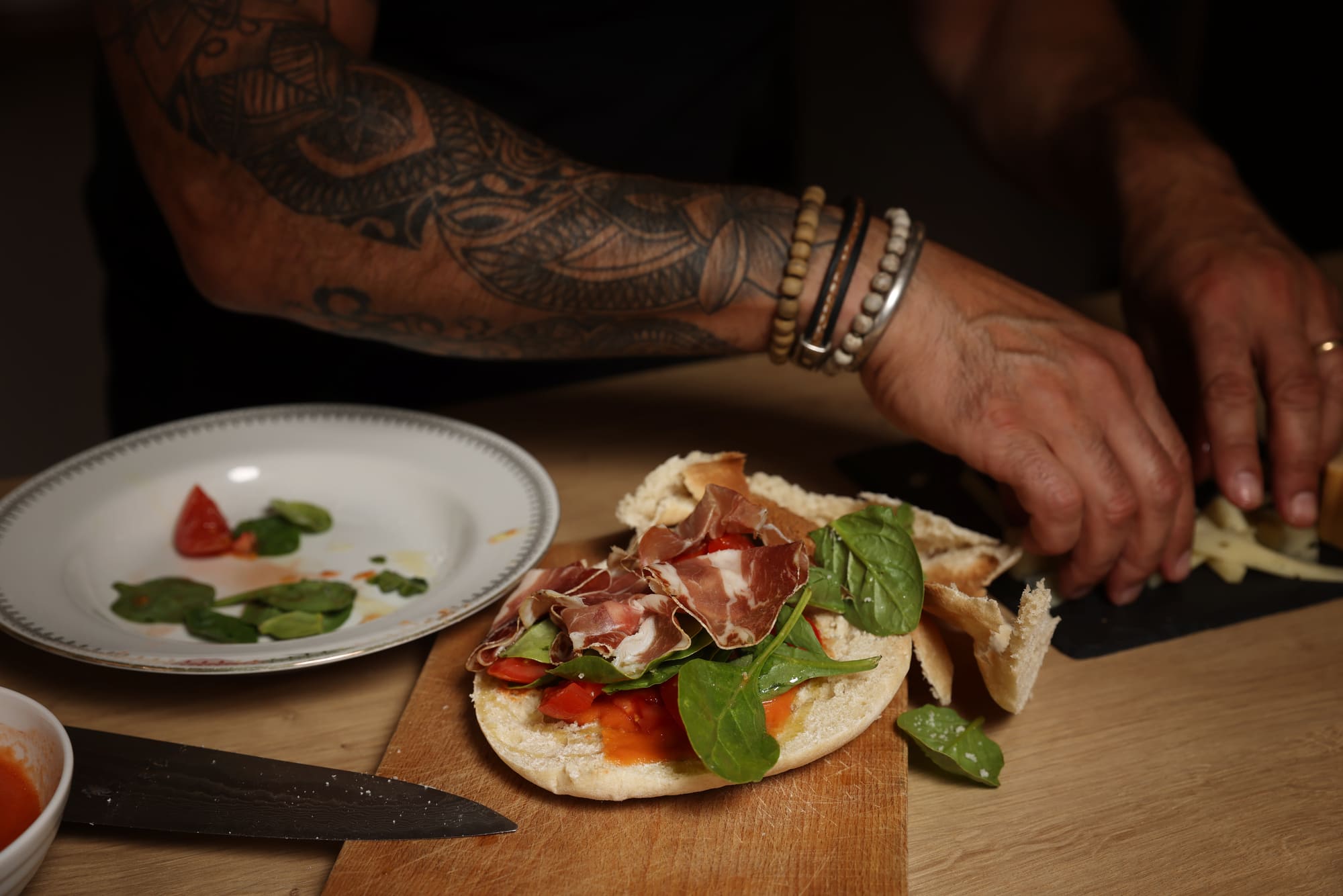 Chez Cucina e Piacere, le plaisir commence par celui des yeux : on profite du spectacle en cuisine offert par Ignazio qui s’affaire à la préparation des plats. Ici, une focaccia bien garnie, là un plat de pâtes accompagné d’une sauce.