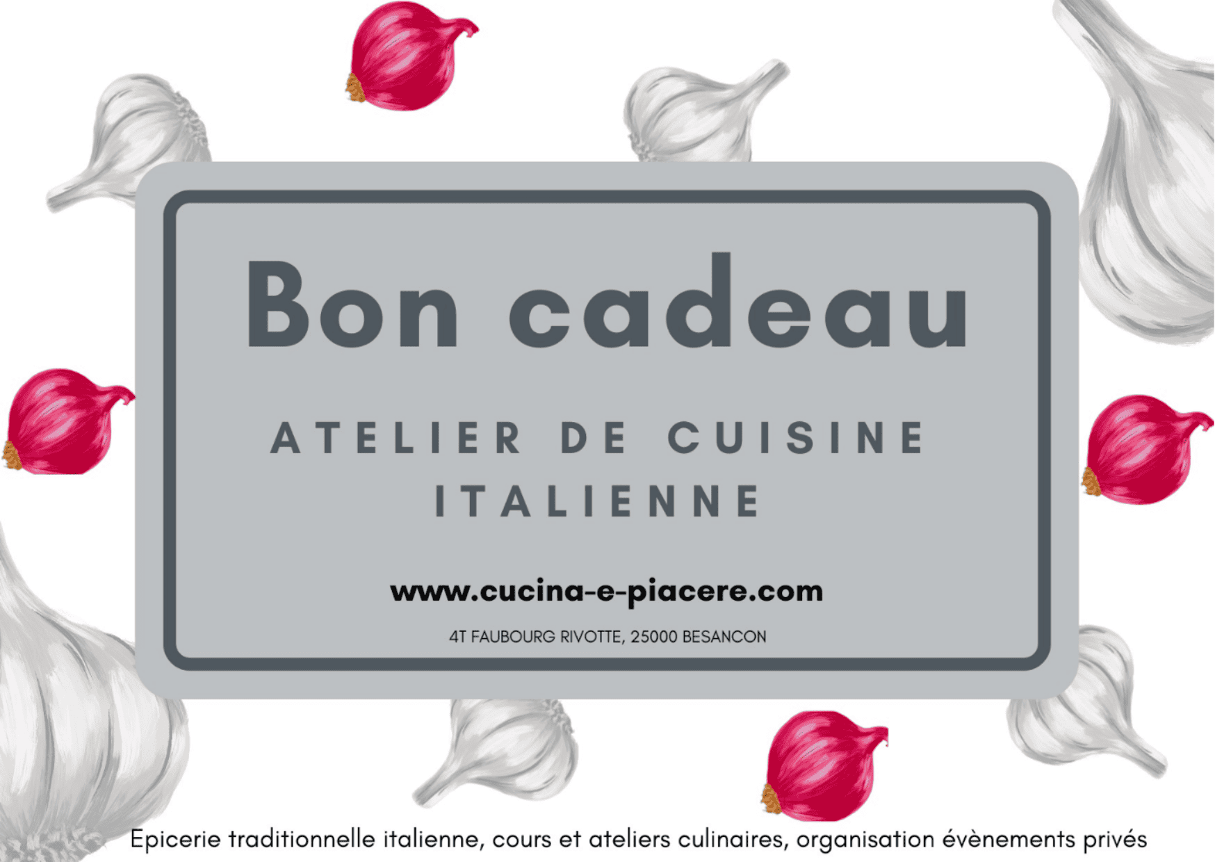 Bon cadeau valable pour un atelier de cuisine italienne à Besançon.